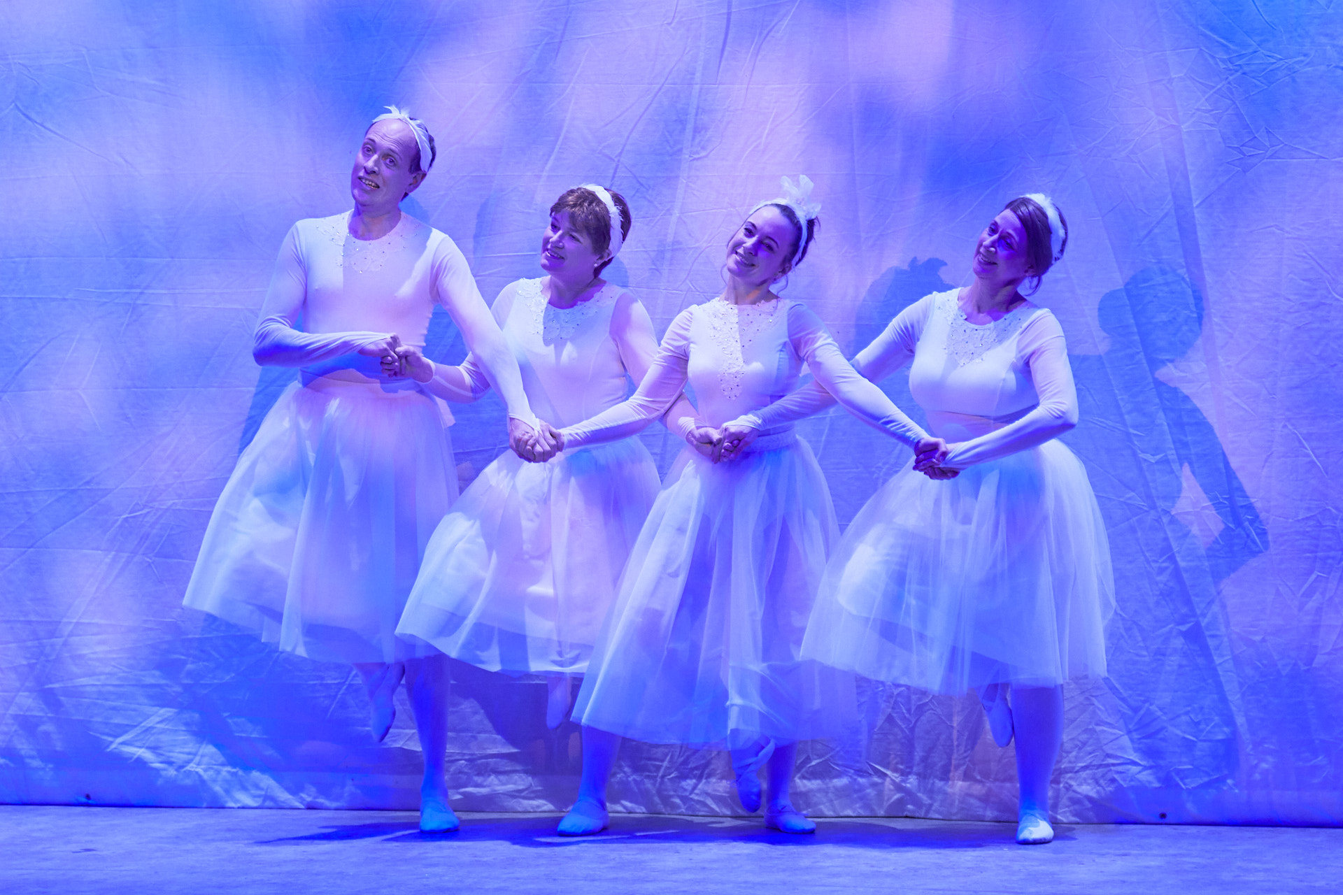Die Proben für die Aufführung vor der großartig dargestellten Kulisse des traditionsreichen Schuhhauses Bauer gestalten sich allerdings schweißtreibend und, sehr zur Freude der Zuschauer auf den Rängen, sichtlich anstrengend. Die Übungen der graziösen Grundpositionen des klassischen Balletts: Körperhaltung, Fuß- und Armpositionen im hautengen Tutu rufen Lachsalven aus dem begeisterten Publikum. Urkomisch und viel Witz gestaltete sich das Finale und gipfelt mit einer grandiosen Ballettaufführung. „Perfekt“ und schwungvoll dargebotene Spagatsprünge nach der Musik von Tschaikowski bilden das Sahnehäubchen der Premiere.