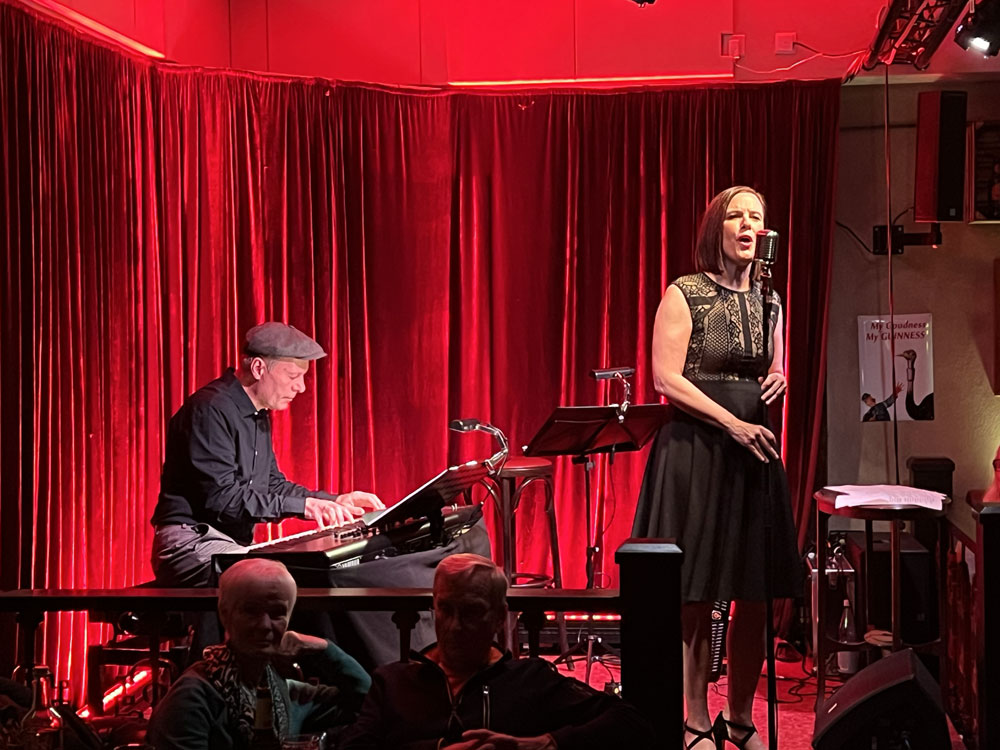"Welch tolle, kraftvolle Stimme", lobten schon in der Pause die Zuhörer. Einige hatten sich gleich nach der Ankündigung des neuen Programms im Frühsommer Karten besorgt. Mit dem Udo-Jürgens-Liederabend "Aber bitte mit Sahne" hatte im Frühjahr Marc Plate der Reihe "Theater extra" im Shakespeare’s Pub des Weyher Theaters wieder Leben eingehaucht; alle Vorstellungen waren ausverkauft. Sonja Schön hatte darin in den Duetten den Part von Jenny, Udo Jürgens’ Tochter, gesungen. Sie hat aber auch schon als June Carter in dem erfolgreichen Stück "I Walk The Line" mit ihrer Stimme überzeugt."