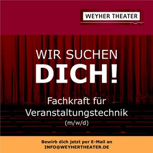 Zur Verstärkung unseres technischen Teams im Weyher Theater und im Boulevardtheater Bremen suchen wir möglichst zum 01.06.2026 eine Fachkraft für Veranstaltungstechnik (m/w/d) – gerne auch Berufseinsteigerinnen und Berufseinsteiger oder frisch…